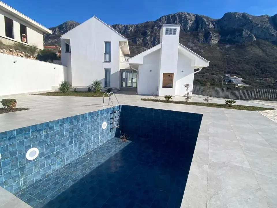 A luxury villa with a swimming pool and a panoramic view of the sea and the Budva Riviera