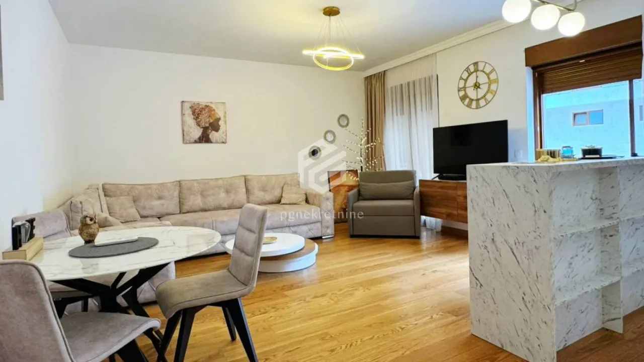 Jednosoban stan površine 51m2 za izdavanje u Tivtu. Nalazi se na prizemlju luksuzne zgrade smještene u naselju ''Obala Đuraševića''. Po strukturi je jednosoban i sastoji se od: dnevnog boravka i trpez
