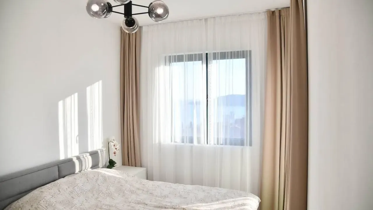 Prodaje se svijetao, potpuno namješten i opremljen stan. Kompleks sadrži bazen, teretanu, saunu, tursko kupatilo i dječju sobu.